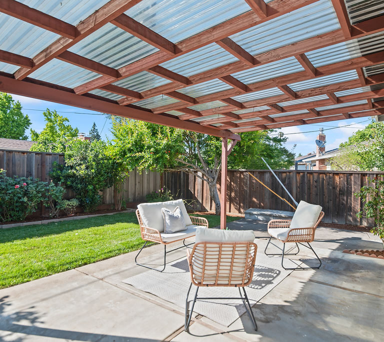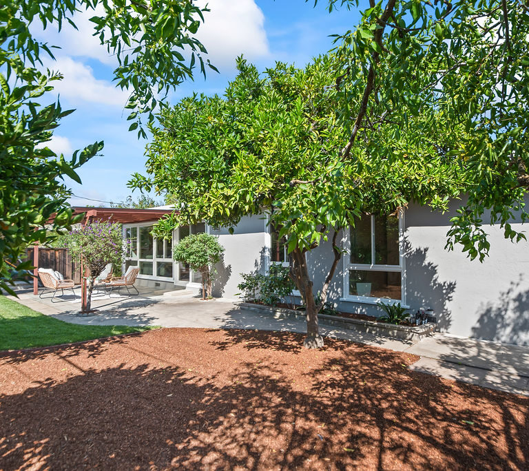 Step outside to a beautifully landscaped backyard with covered paved area perfect for entertaining. Mature fruit trees, including persimmon, apricot, lemon, pomegranate, and jujube; wide side yard with space for seating or raised garden beds; and sprinkler system to keep the lush landscaping healthy and enhance the peaceful garden setting.
